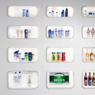 PRÄSENTATIONSWAND Empfang + Konferenzraum für justblue.design, Designagentur Präsentationswand mit direkter Beleuchtung